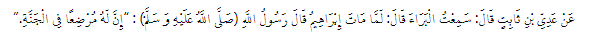 Adî b. Sâbit anlatıyor: “Berâ'ın şöyle dediğini işittim: (Hz. Peygamber'in oğlu) İbrâhim öldüğü zaman Resûlullah (sav), 'Muhakkak ki onun için cennette süt