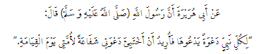 Ebû Hüreyre'den rivayet edildiğine göre, Resûlullah (sav) şöyle buyurmuştur: “Her peygamberin niyaz ettiği bir duası vardır. Ben de duamı kıyamet gününde